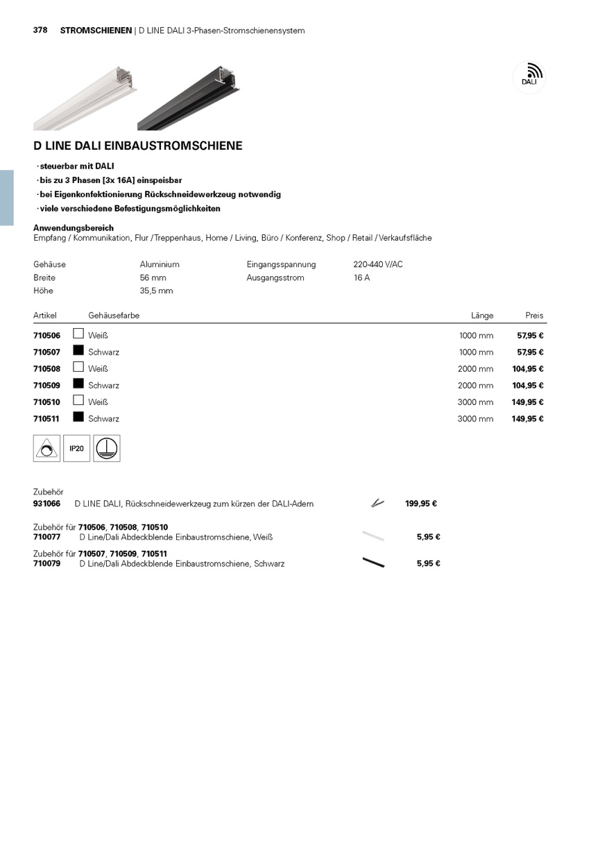 Weiterführende Links zu "Deko-Light 3-Phasen Schienensystem, D Line DALI Einbaustromschiene mit Flügel 3m, weiß, Aluminium"