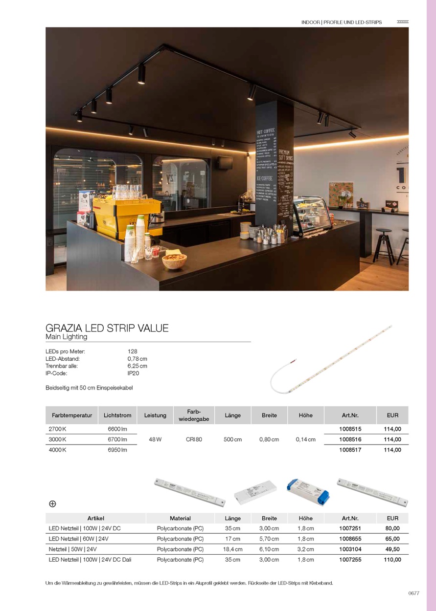Weiterführende Links zu "LED Strip GRAZIA Value, 24V DC, 128 48W LED/m, 2700K, 500cm"
