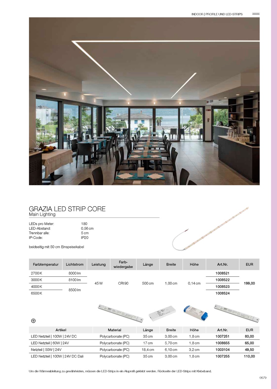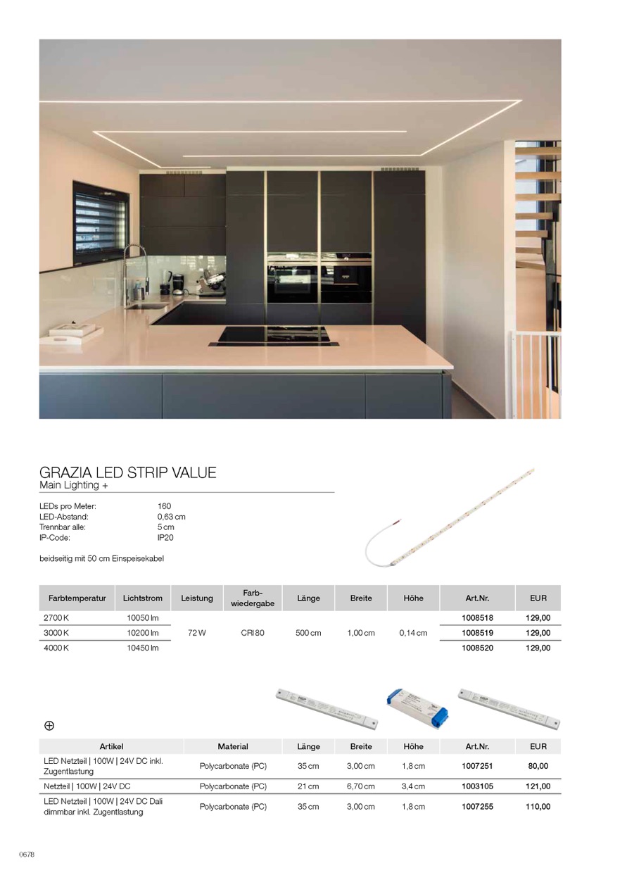 Weiterführende Links zu "LED Strip GRAZIA Value, 24V DC, 160 72W LED/m, 4000K, 500cm"
