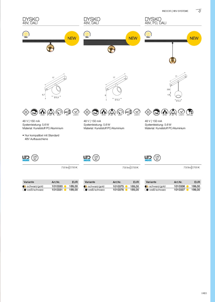Weiterführende Links zu "LED Spot DYSKO TRACK 48V, 36 Grad , 5, 6W, 2700K, 750lm, IP20, dimmbar"