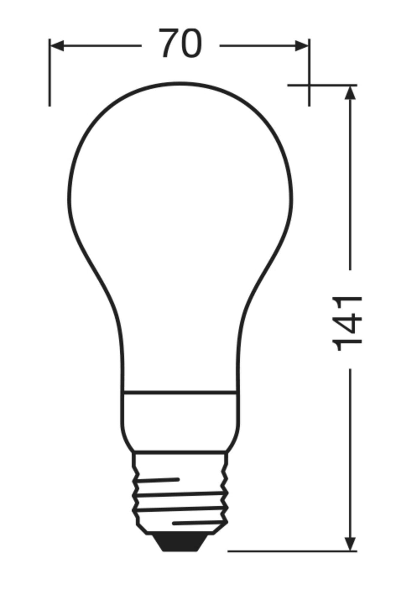LEDVANCE, Leuchtmittel, CLA150 E27 DIM 18W 3300K, matt, 18.0 W, 2452 lm, Glas, Milchig, Matt, Höhe: 141 mm, Durchmesser: 70 mm, Lebensdauer L70 / B50: 15000 h, IP 20, EEI: D