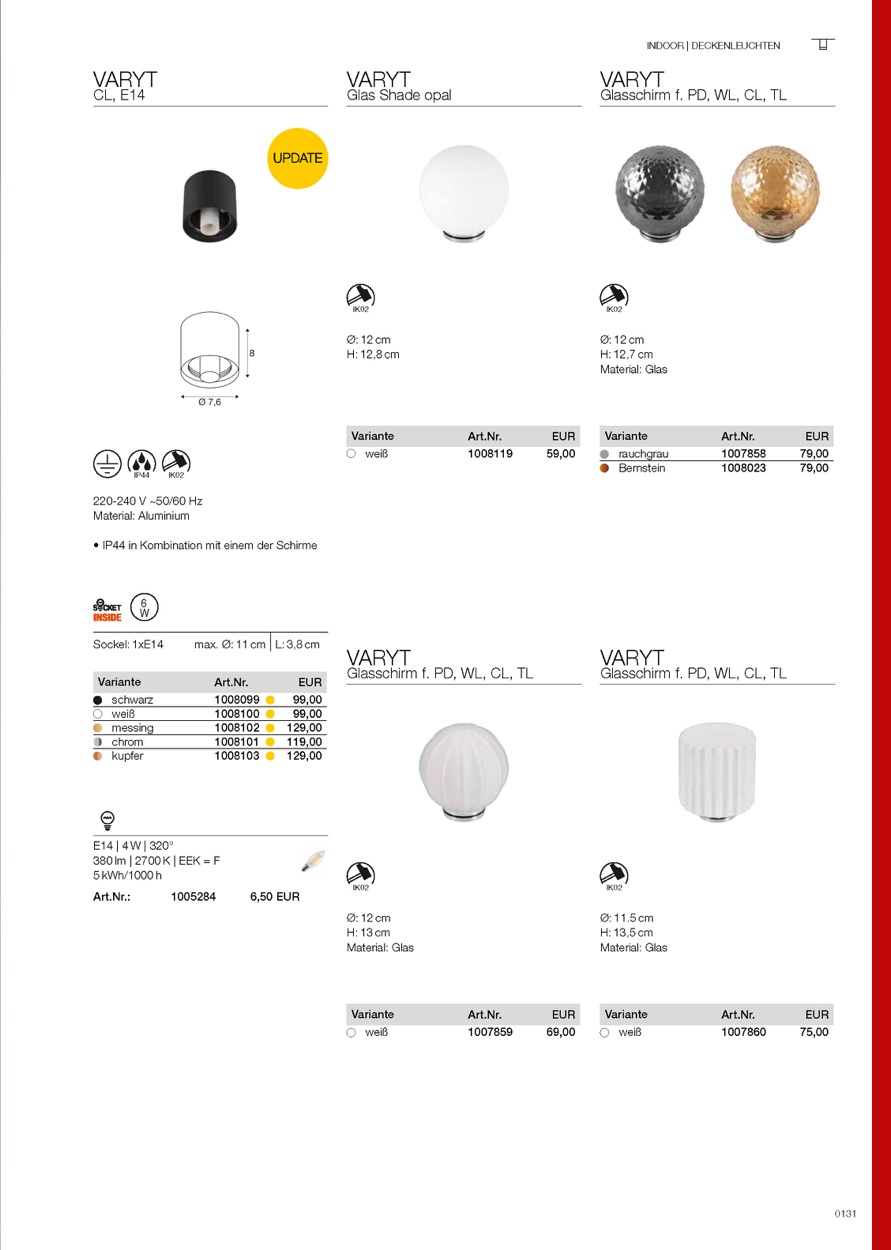 Weiterführende Links zu "VARYT Glasschirm f. PD WL CL TL Linie"