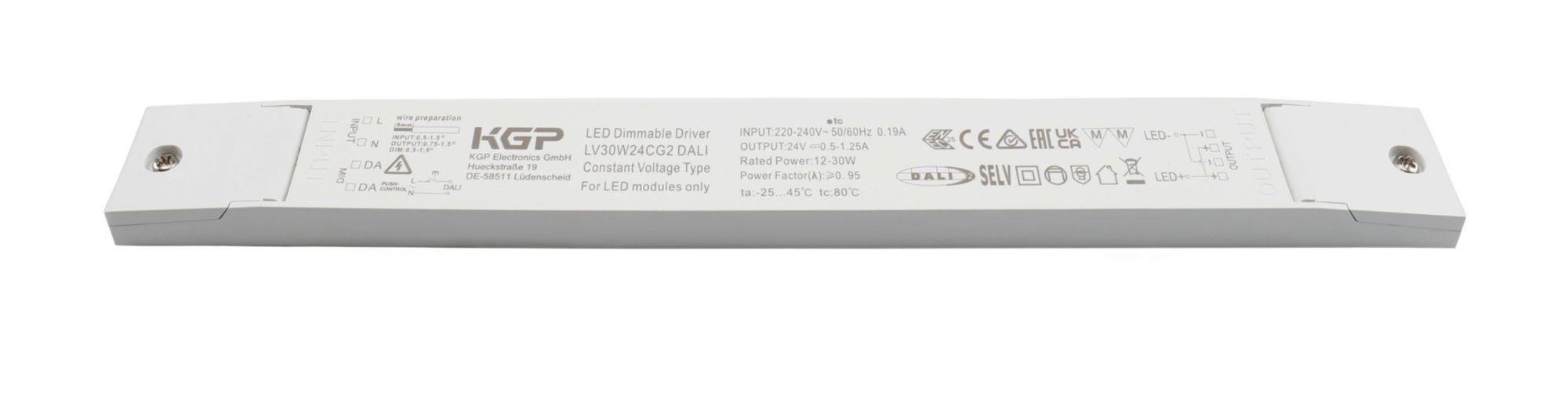 Produktinformationen "Netzgerät (CV, DC) dimmbar, KGP, Long-Flat, DIM, CV, LV30W24CG2 DALI, Aluminium, Weiß, 30W, 24V"