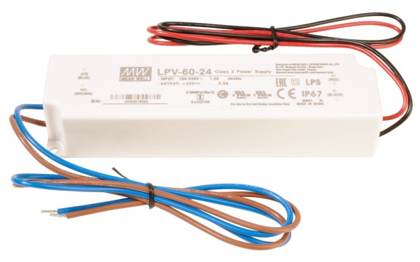 Meanwell Netzgerät (CV, DC), CV, LPV-60-24, Kunststoff, Weiß, 60W, 24V, 163x43mm