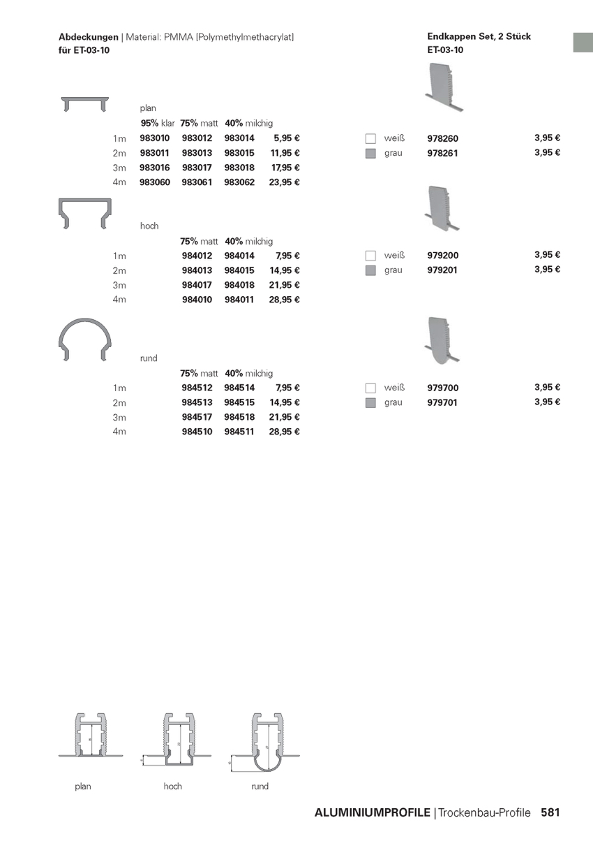 Weiterführende Links zu "Deko-Light Profil, Trockenbau-Profil, Wand-Decke ET-03-10, Aluminium, Silber-matt eloxiert, 1250mm"