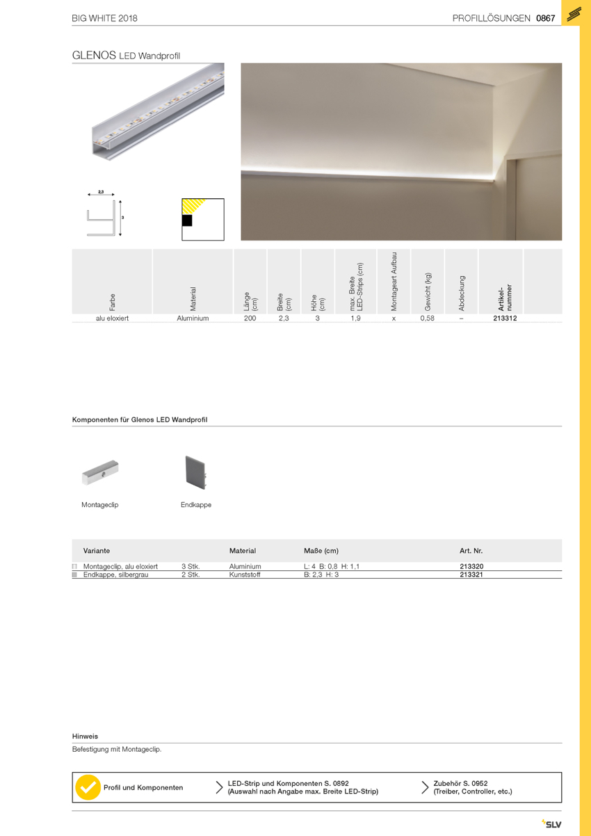 Weiterführende Links zu "GLENOS, Wandprofil, LED, aluminium eloxiert, 2 m"