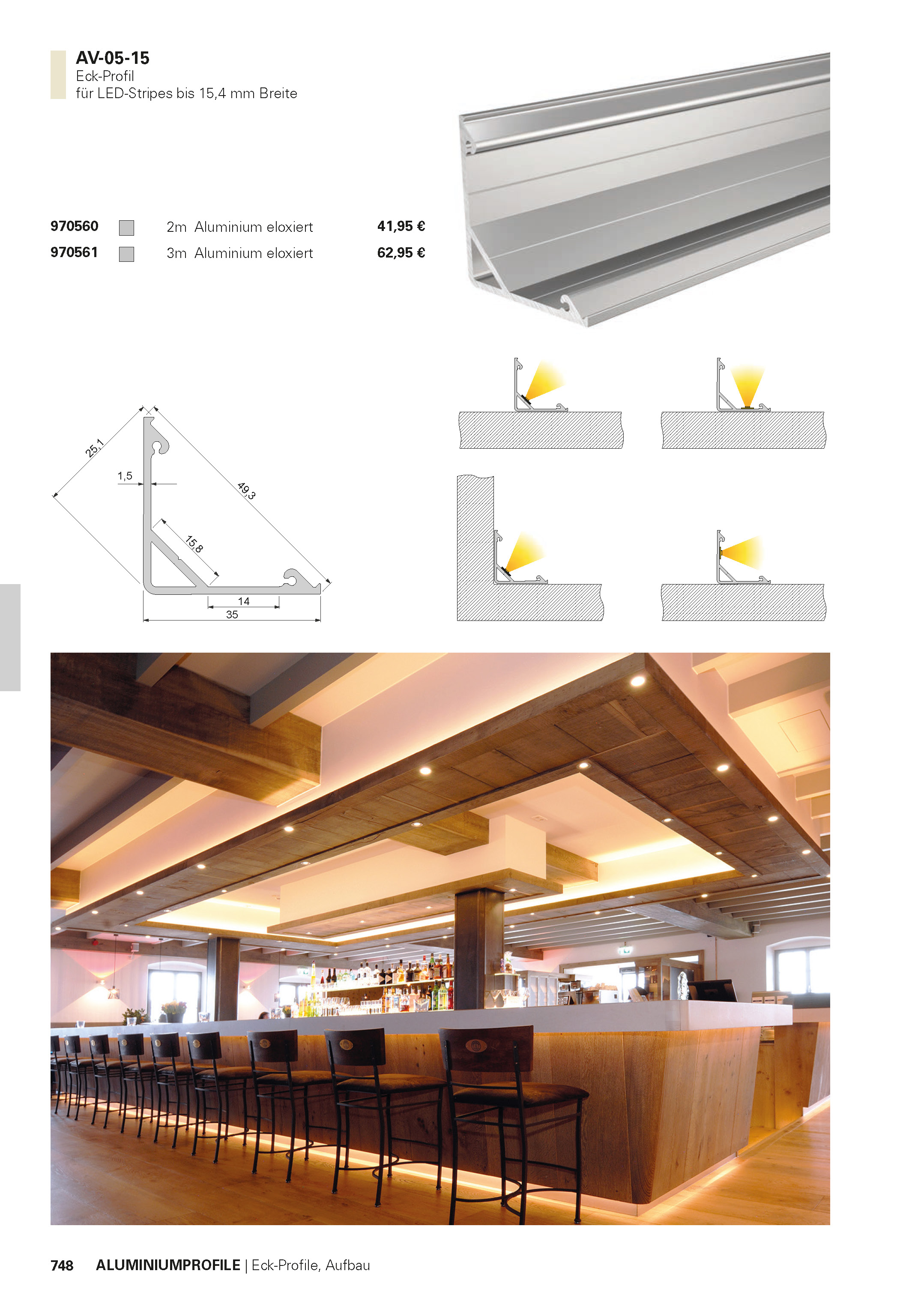 Weiterführende Links zu "Deko-Light Profil, Eck-Profil AV-05-15, Aluminium, Silber Eloxiert, 3000mm"