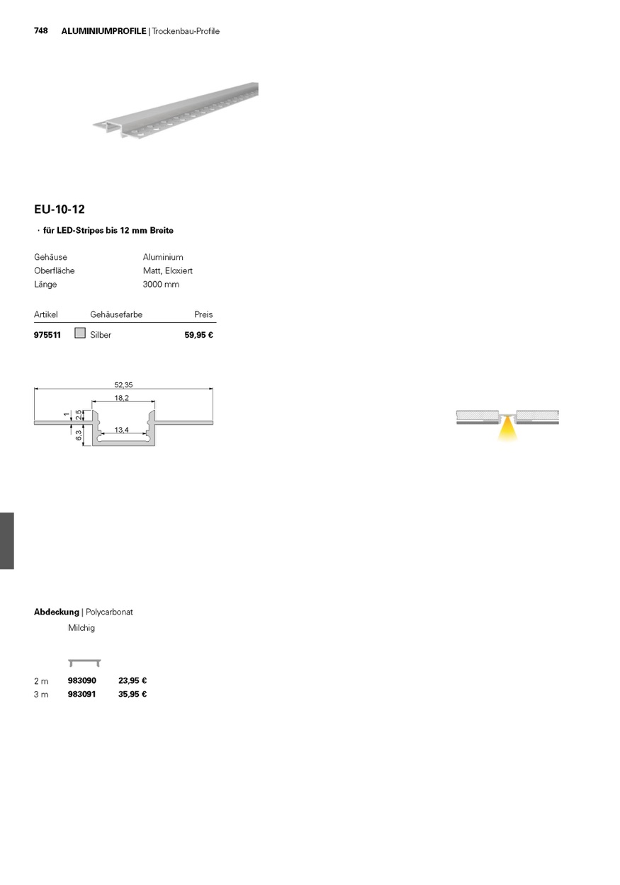 Weiterführende Links zu "Deko-Light Profil, Trockenbau-Profil, EU-10-12, 3m, Silber, Aluminium, Silber Matt, Eloxiert, 3000mm"