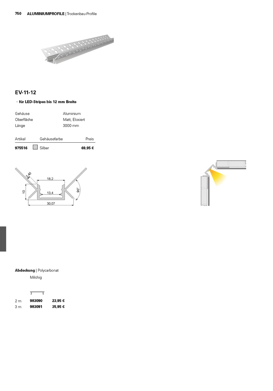 Weiterführende Links zu "Deko-Light Profil, Trockenbau-Profil, EV-11-12, 3m, Silber, Aluminium, Silber Matt, Eloxiert, 3000mm"