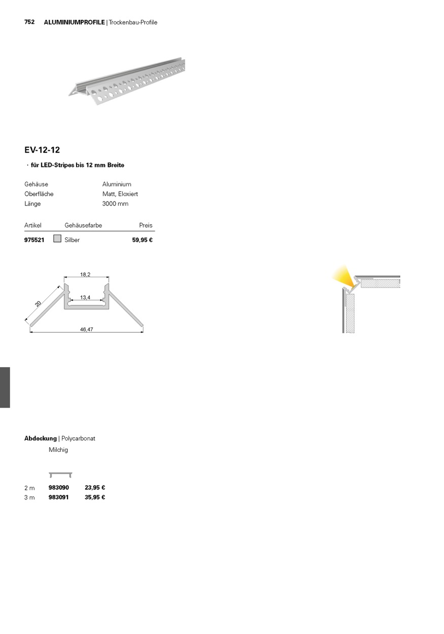 Weiterführende Links zu "Deko-Light Profil, Trockenbau-Profil, EV-12-12, 3m, Silber, Aluminium, Silber Matt, Eloxiert, 3000mm"