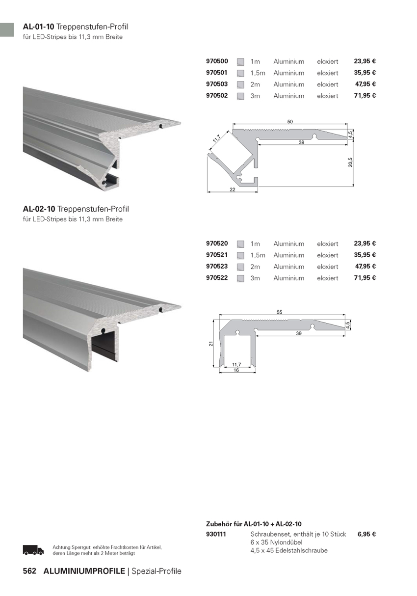 Weiterführende Links zu "Deko-Light Profil, Treppenstufen-Profil AL-01-10, Aluminium, Silber Eloxiert, 3000mm"