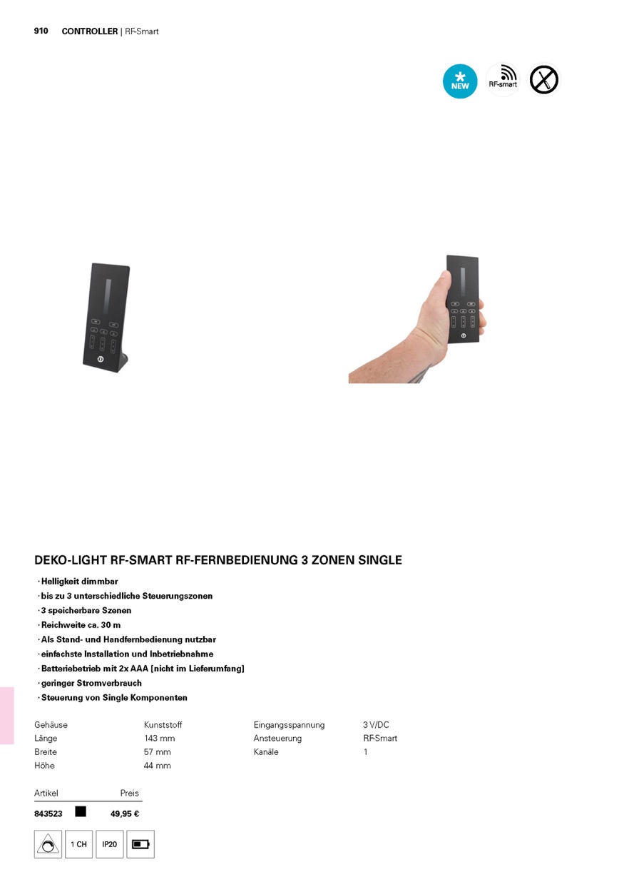 Weiterführende Links zu "Deko-Light Steuerung RF, RF-smart, Standfernbedienung, schwarz, 3 Zonen, Single, Kunststoff, Schwarz"