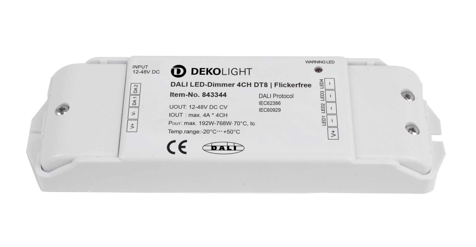 Weiterführende Links zu "Deko-Light Niedervolt DALI Dimmer (CV, DC), DALI 2 PWM Dimmer CV 4CH, 12-48V, 4A/CH, DT8, Kunststoff"